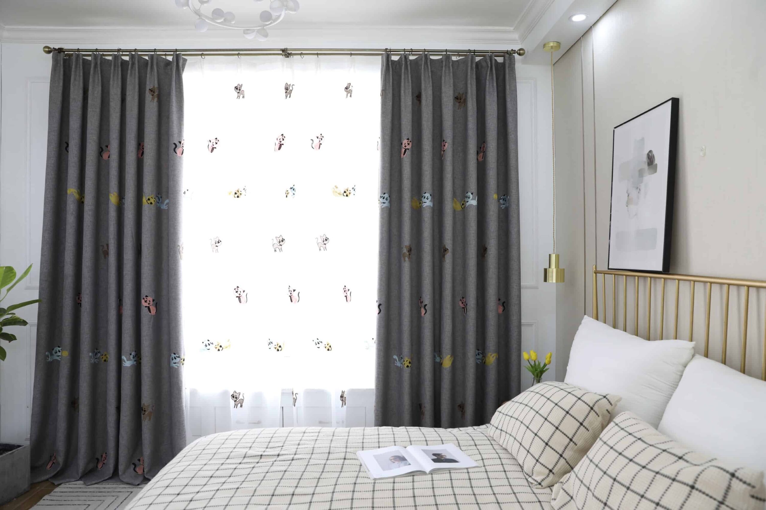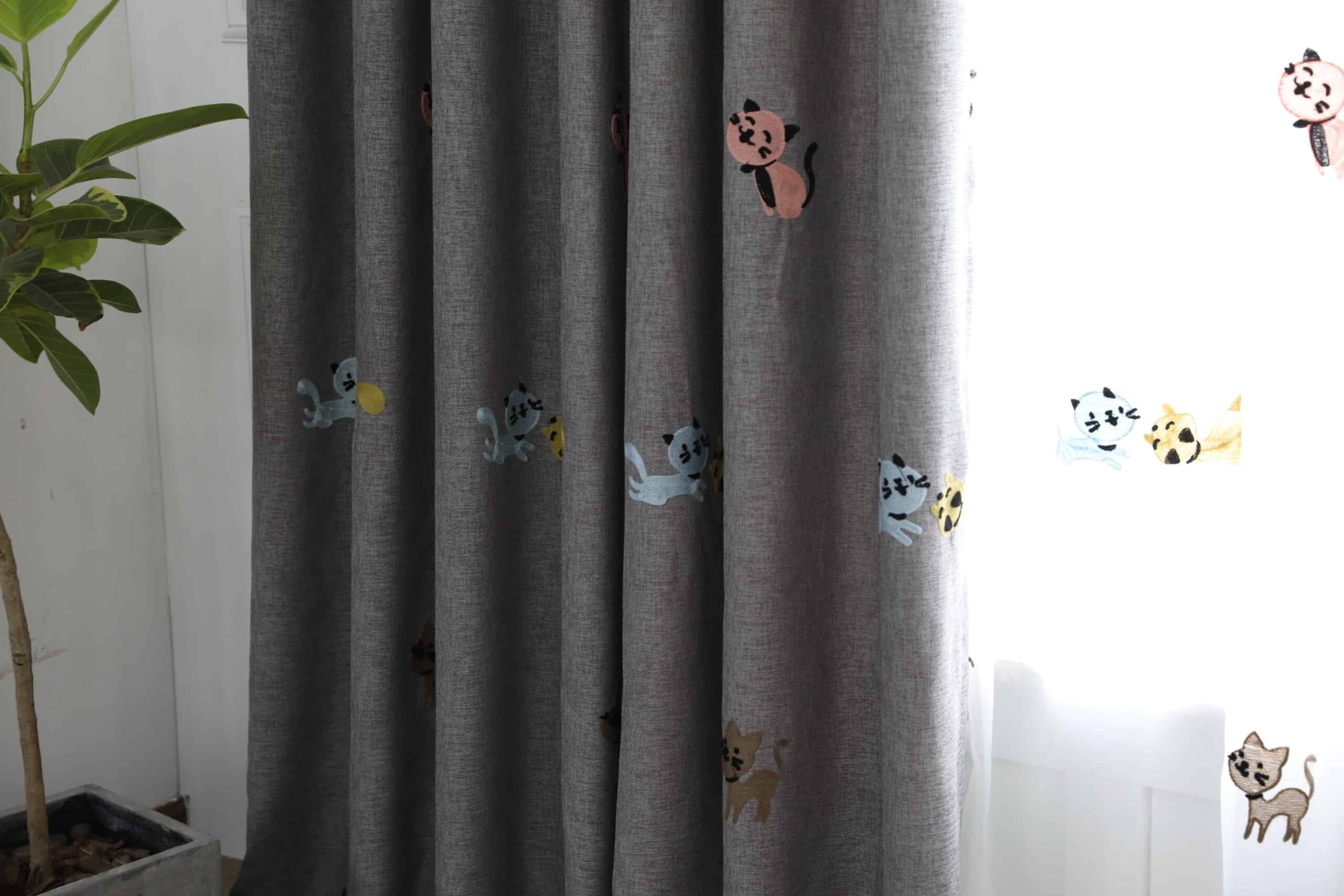 Poezen gordijnen kleur grijs. Verduisteringsgordijnen met een poezen patronen. De gordijnen zijn gemaakt van een zeer zachte microfiber en houden 70% licht tegen en 100% UV werend. Gemaakt van 100% polyester. De gordijnen hebben een perfecte isolerende werking tegen warmte en koude buiten. Geschikt voor familie slaapkamer en kinderkamer. Alle gordijnen incl gordijnhaken worden gratis op maat gemaakt en gratis verzending in Nederland en België.